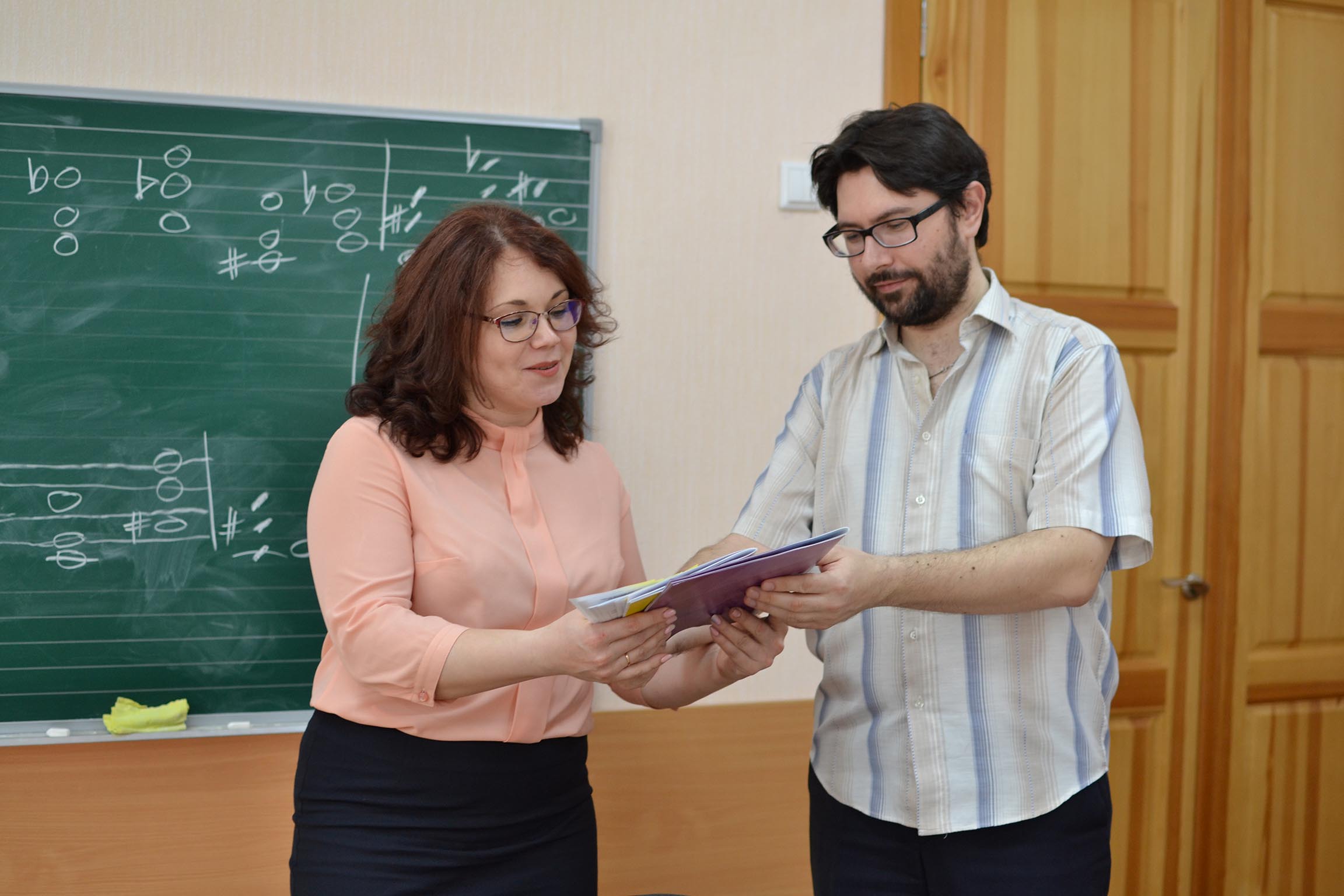 6 мая в МБУ ДО «Детская музыкальная школа № 4» Ольга Владиславовна представила присутствующим презентацию о Колледже искусств Республики Коми и о реализуемых в колледже проектах: конкурсе молодых исполнителей «Юные дарования» им. Я.С. Перепелицы и о фестивале-конкурсе детского и юношеского хорового искусства «Звонкие голоса». Александр Аркадьевич провёл мастер-класс с обучающимися школы, на котором он показал преподавателям особенности работы с детскими голосами и принципы подбора учебного репертуара. Присутствующие преподаватели и директор музыкальной школы Татьяна Вячеславовна Клестова очень тепло приняли выступающих и остались довольны мероприятием. В заключение мастер-класса Татьяна Вячеславовна вручила Александру Аркадьевичу благодарственное письмо, памятный подарок и поблагодарила за проведённое мероприятие, выразив желание о дальнейшем сотрудничестве.